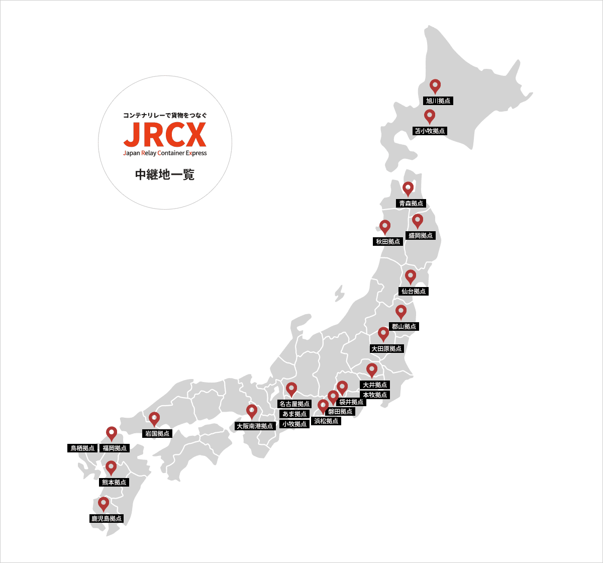 JRCXコンテナにより、全国主要幹線25拠点での貨物リレーを実現
